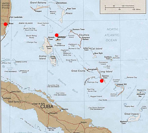 Clues picked up from deeperblue: "There is very little tourist development except on the north end, and that is low key. Most of the population are farmers or commercial fishermen diving for lobster and fish. You will need a vehicle. Car rentals are available, but a little rough by first world standards. Boat rental businesses don't exist.One unfortunate thing, the Bahamas are expensive in US dollars, everything you consume will cost double stateside prices. The best way to do Long Island is get friendly with the natives. There are lots of very good divers there, especially around Salt Pond, and they will be interested in what you're doing. The locals are fantastic people, but the culture takes some understanding. Bahamians don't like to tell you no. Often, yes really means no. You can't push'em. This, the slow pace of life, and limited local resources can make you crazy. The ocean diving is outstanding, but access is tricky. Get someone to take you to Millers, the best structure is just south of the tiny harbor. You can dive the reefs from shore, but that involves a pretty good swim in Very sharky water. I don't reccommend it. For some reason, the reef sharks there can be aggressive as heck. Unless you are in Clarencetown, which has a big harbor, a small skiff in the back of a pickup launched off the beach is by far the best way to handle it. Some of the reefs off Stella Maris (northern end) have suffered much in recent years, I'm not sure about Millers or Clarencetown. Diving out of and just north of Clarencetown used to be fabulous, , 30 meter plus vis(40 m at times), big ledges, sharks sleeping in caves. Acres of huge staghorn in 50-60 ft of water, unbelievable. Clarencetown has some houses for rent, probably not much in Salt Pond. From the description on the above website, it must be closer to Clarencetown, near the end of a section of coast that is sheltered from the southeast trade winds. That should be real good for ocean diving conditions. Spearfishing is fine, and should be fairly productive in deeper water. The reefs, when I saw them, were spectacular. The sharks can be aggressive, (much more than in most of the Bahamas) but if you are diving buddies and a boat(with driver) is close, they shouldn't be a serious problem. Its the long swim with no boat that would make me nervous. You might want to rethink diving offshore, there should be some kind of wall diving, a huge vertical drop that starts about 150 ft and goes to a thousand or more. Very spectacular, especially if you have the depth capacity to get below the lip. One thing for non-local spearos. Big preditors can poison you every now and then. I don't eat big anything, cuda over 5 pounds, black and yellowfin grouper over 15, hogfish over 12, muttons over 6 or 8. No jacks period. Nassau grouper of any size are ok. Ciguatera is not all that common, but is a very nasty, long term, nerve poison." Will Trubridge invites you to the Deans Blue Hole. Weekly rate: single: US$190 €155